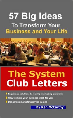 My all-time favorite business book (that I kept in my bathroom for several years reading it over and over and over … TMI notwithstanding) is Ken McCarthy’s System Club Letters book. It’s good for writing, for persuasion, for marketing and busi­ness in general, all of it.
