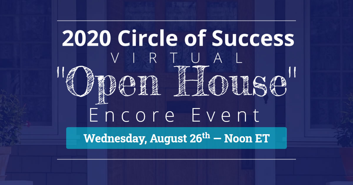 That’s why I’m inviting you to a very special LIVE Virtual Open House Encore Event so you can see exactly what the Circle of Success experience entails.