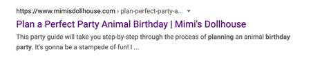 If the Search Result link had said, “Easy Ideas for a Zoo Birthday Party,” that would have been a better match.