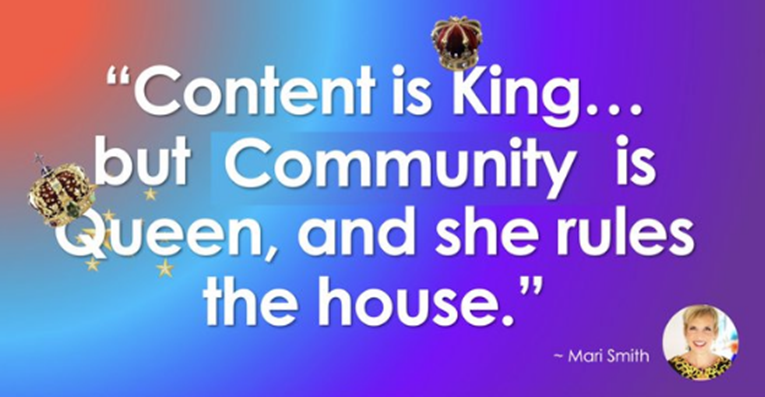 So, what’s more important than trying to woo your followers to engage with your every social media post is building a solid community that people feel compelled to join. Hence, I’ve adjusted my popular quote to the following: “Content is King but community is Queen and she rules the house.”