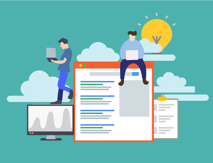 Graphic illustration of a copywriter working on her laptop